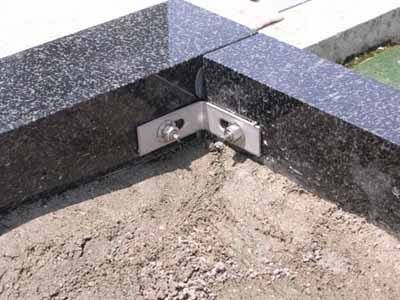 あらき石材は、お墓の強度を上げる為。石の連結に、接着剤とステンレスの金具を併用します